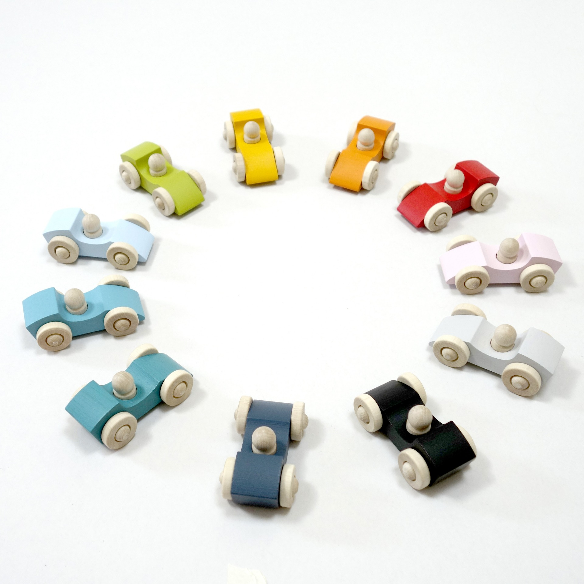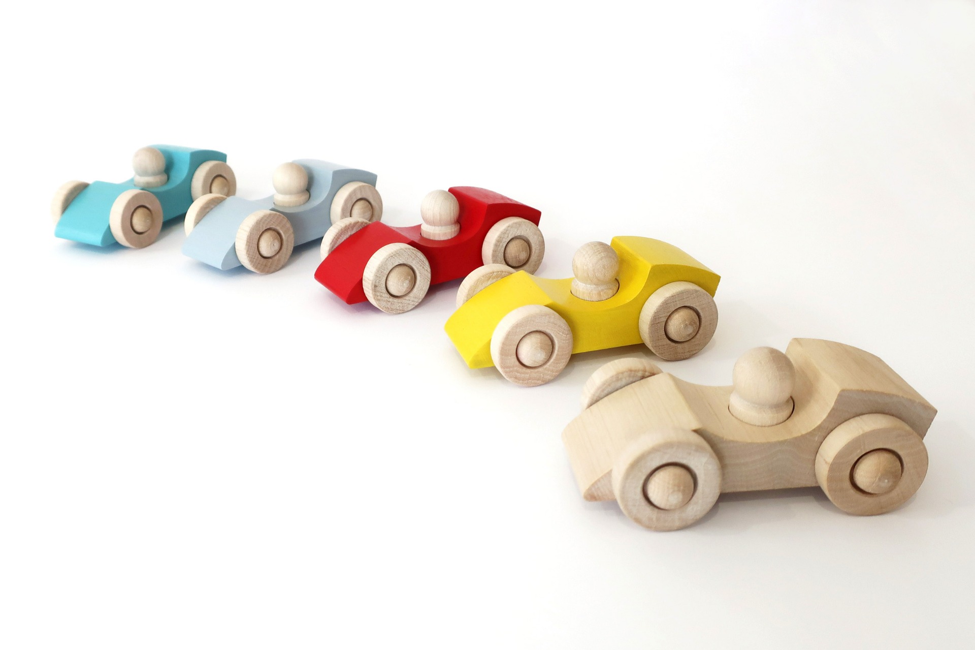 Závodní auto v mnoha barevných provedeních i v surové dřevěné podobě. Malý stylový dárek pro malé závodníky.